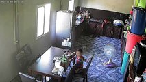 Occurred on November 9, 2022 / Chon Buri, Thailand<br /><br />: A fan falls off the wall startling a kiddo while they eat.