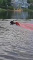 Smokey, the rescue dog, loved to boat and swim. But hurricane Ian damaged the dock by tilting it. So the dog slipped and fell into the water when he ran on it. Although he didn’t give up and kept trying to get to the boat, he kept falling off the dock.