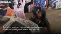 Jokowi bertemu sejumlah anak yang tengah belajar matematika di kawasan Kantor Bupati Humbang Hasundutan, Provinsi Sumatera Utara.