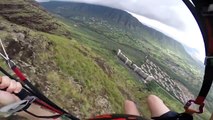 This woman paraglided through mountainous landscapes at incredible speeds. She amazingly spun and flipped with her line as she descended downhill.