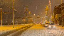 Snow falls in Blackpool coating roads and buildings