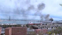Un incendio en el Puerto de Barcelona quema un vehículo y varios contenedores de mercancías