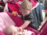 Agathe et Gabrielle font du trotteur