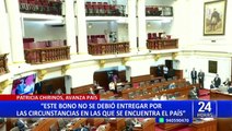 Patricia Chirinos alista moción para que bono congresal de casi 10 mil soles regrese al Estado