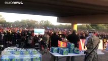 Federales de Estados Unidos habilitaron una puerta en el muro metálico que divide a Ciudad Juárez de Texas, decenas de migrantes permanecen formados junto a ésta entrada debido a que de manera intermitente los agentes estadounidenses permiten el paso