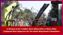 A woman and her toddler son died after an under-construction metro pillar collapsed near Nagavara on the outer ring road in Bengaluru on Tuesday morning.