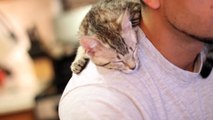 Lazy Kitten Sleeps on His Head