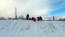 Snow arrived in Falkirk district and it failed to put off visitors and dog walkers out enjoying the fresh air at Helix Park and Kelpies.<br /><br />The Met Office has issued a yellow warning for snow and ice which isn't due to end until 9am on Wednesday. It stated: “Snow and hail showers, heavy at times, bringing further accumulations, icy conditions and disruption to transport.”