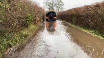 Distressing footage has surfaced of Kathleen Scruton worrying about her car and her dogs in it while driving through flood water. <br /><br />With the water going all the way up to the doors and the cars ahead of hers moving at a snail's pace, Kathleen seems pretty concerned about her ride getting stalled in the middle of the freeway.<br /><br />"I got stuck on Highway One northbound in Morro Bay, not knowing it had just flooded," the filmer told WooGlobe. "The freeway was not closed yet and all cars were forced to drive through the flood as there was no way to turn around."<br />Location: Morro Bay, USA <br />WooGlobe Ref : WGA479851<br />For licensing and to use this video, please email licensing@wooglobe.com