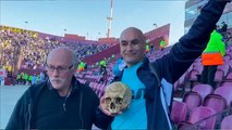 Aficionados del Racing llegan al Estadio General Pablo Rojas con todo y el cráneo del abuelo