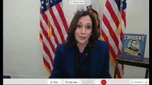 "Know this: President Biden and I agree, and we will never back down,” Harris said to applause in Tallahassee on Sunday, the 50th anniversary of the Roe v. Wade decision that once guaranteed the federal right to abortion. “We will not back down. We know this fight will not be won until we secure this right for every American.”