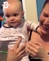 This man was spending time with her daughter when they sang her favorite nursery rhyme and then he asked her for a kiss. The baby however, was in no mood for that and as soon as the rhyme was over she looked away. This made her dad burst out in laughter.