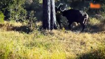 Only in the Territory: A baby goat has been filmed having the time of its life, using two potentially deadly buffaloes as trampolines in the Outback town of Katherine in the Northern Territory.