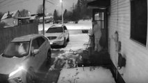 This girl was walking out of her house after a snowstorm. Suddenly, she lost her balance on the icy stairs. She then slipped off the stairs and fell to the ground.