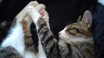Purring Cat Scratches His Nose