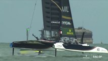 A British Grand Prix catamaran team crew member was filmed dramatically going overboard at 30mph - but miraculously avoided injury.<br /><br />Matt Gotrel, 33, from the Emirates Great Britain Sail Grand Prix team, was thrown from the boat and repeatedly bounced up and down into the hull while attached to a safety line.<br /><br />The incident occurred on Saturday (February 18) during the Australia SailGP, in Sydney Harbour, as the British team were approaching the finish line at speeds close to 30mph.<br /><br />Teammates quickly pulled Matt from the water and managed to eventually cross the finish line in an admirable 6th place.<br /><br />Matt, from Chipping Campden, Glos., tweeted: "Some places aren't for standing! Top work by the team to get me back on board and finish the race. <br /><br />"A few dropped points, but thankfully just some bruises to bring home!"<br /><br />The event was marred by technical issues and many near-capsizes due to volatile weather conditions with the second day of racing being cancelled.