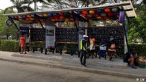 A bus shelter made of plastic waste in Ghana
