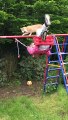 Cat Falls on Swinging Girl Who Does Backflip and Lands Like Superhero