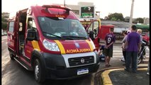 Moto tem pneu furado ao passar em buraco na Avenida Carlos Gomes; Motociclista sofre queda e fica ferida