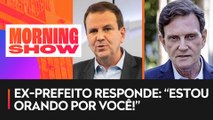 O prefeito do Rio de Janeiro, Eduardo Paes, trocou mensagens com o ex-prefeito Marcelo Crivella nas redes sociais neste domingo (05). O atual prefeito da cidade atacou o deputado federal Marcelo Crivella no Twitter, que respondeu dizendo que está orando pela cidade. Assista ao Jornal da Manhã completo: https://www.youtube.com/watch?v=LWkNhfbyLMA<br /><br />Baixe o app Panflix: https://www.panflix.com.br/<br /><br />Baixe o AppNews Jovem Pan na Google Play<br />https://bit.ly/2KRm8OJ<br /> <br />Baixe o AppNews Jovem Pan na App Store<br />https://apple.co/3rSwBdh<br /><br />Inscreva-se no nosso canal:<br />https://www.youtube.com/c/jovempannews<br /><br />Entre no nosso site:<br />http://jovempan.com.br/<br /><br />Facebook:<br />https://www.facebook.com/jovempannews<br /><br />Siga no Twitter:<br />https://twitter.com/JovemPanNews<br /><br />Instagram:<br />https://www.instagram.com/jovempannews/<br /><br />#JovemPan <br />#JornalDaManhã<br />