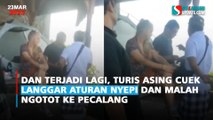 Wisatawan asing atau bule yang datang ke Bali tak ada henti-hentinya berulah. Kali ini, saat umat Hindu sedang khusyuk menyelenggarakan melasti yang merupakan rangkaian upacara menyambut Hari Raya Nyepi, Rabu 23 Maret 2023 nanti.<br /><br />Tampak seorang pria asing yang mengendarai sepeda motor dalam rekaman video yang beredar luas di media sosial, Senin 20 Maret 2023.<br /><br />Hendak menyerobot iring-iringan rombongan umat dengan menggunakan sepeda motornya. Sontak aksi bule itu dihentikan pecalang atau polisi adat.<br /><br />Mengingat, rombongan Melasti itu berjalan kaki untuk menuju Pantai Labuan Sait, Pecatu, Kabupaten Badung.<br /><br />Jadi pengendara yang searah dengan tujuan rombongan Melasti diminta untuk pelan-pelan melintas atau berhenti sejenak.<br /><br />Tapi, si bule pria itu malah mengamuk sambil berteriak-teriak dari atas motornya. Dia teriak teriak agar pecalang tidak menyentuh pacarnya. Bule tersebut juga mengaku bahwa dirinya sudah dua tahun tinggal di Bali.<br /><br />Beruntung warga dan pecalang masih sabar dan tenang menghadapi kelakuan bule yang tidak menghargai warga yang sedang beribadah itu. Di sisi lain, pacar si bule juga berusaha menenangkan amarah.<br /><br />"Bule yang kayak gini harus di proses secara adat maupun hukum ini sudah menandakan tidak ada toleransi," ucap seorang netizen.<br />