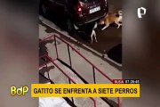 Gato se enfrenta a siete perros y los hace correr