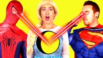Spiderman’s LASER EYES save Frozen Elsa! w- Pink Spidergirl Joker Hulk Superman Anna! Superhero Fun