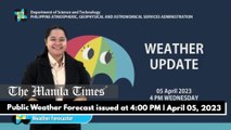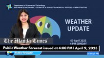 Public Weather Forecast issued at 4:00 AM | April 8, 2023 <br /><br />Video Courtesy of DOST/Pag-asa <br /><br />Subscribe to The Manila Times Channel - https://tmt.ph/YTSubscribe <br /><br />Visit our website at https://www.manilatimes.net <br /><br />Follow us: <br />Facebook - https://tmt.ph/facebook <br />Instagram - https://tmt.ph/instagram <br />Twitter - https://tmt.ph/twitter <br />DailyMotion - https://tmt.ph/dailymotion <br /><br />Subscribe to our Digital Edition - https://tmt.ph/digital <br /><br />Check out our Podcasts: <br />Spotify - https://tmt.ph/spotify <br />Apple Podcasts - https://tmt.ph/applepodcasts <br />Amazon Music - https://tmt.ph/amazonmusic <br />Deezer: https://tmt.ph/deezer <br />Stitcher: https://tmt.ph/stitcher<br />Tune In: https://tmt.ph/tunein<br />Soundcloud: https://tmt.ph/soundcloud <br /><br />#TheManilaTimes