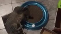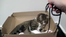 Cat in a shoe box obsessed with new toy
