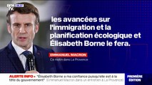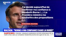 En déplacement en Alsace dans une entreprise de traitement du bois, le président de la République, Emmanuel Macron, affirme qu'"Élisabeth Borne a toute sa confiance".
