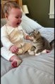 funny baby and dog and cat kute