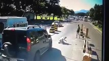 Ce cycliste se prend un kangourou à pleine vitesse... Douloureux