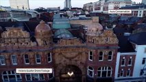 A dramatic new video discovering and exploring the world-famous Black Sabbath Bench in Birmingham from the air has been launched.<br /><br />Westside Business Improvement District (BID) commissioned the footage by a skilled drone operator to help publicise the exact location of the bench for the thousands of visitors who come to the UK’s second city to find it.<br />The 136-second video is filmed with the haunting soundtrack Scent of Dark in the background, used with the special permission of Black Sabbath guitarist Tony Iommi.<br />Adam Marshall, an amateur photographer and videographer, explained that he waited for a bright day with dramatic clouds and blue sky to film the video in early April 2023.<br /><br />He said: “The filming took place using a drone that flew up and down Broad Street and the Worcester & Birmingham Canal, through Brindleyplace and under the bridge into Gas Street Basin, highlighting the cross shape where the bench sits.”<br /><br />The footage begins by rising up above the beginning of Broad Street at the Centenary Square end, flanked by the Hyatt Hotel and Symphony Hall. It then travels up Broad Street depicting a bird’s eye view of the Black Sabbath Bridge, where the bench is located.<br /><br />The next scene begins beyond Gas Street Basin and flies through the canal tunnel under the bridge, then quickly switches to an approach from the Brindleyplace end, this time suddenly pulling up and onto the bridge.<br /><br />More aerial views are shown before the drone-mounted camera helicopters down to the bench for close-up scene hovering along its length, picking out the names and faces of Geezer, Ozzy, Tony and Bill.<br /><br />The camera then helicopters back up, down and around the bench, showing off the mixture of historical and modern buildings that flank its cross-shaped street and canal location, and climaxing with moody clouds on the skyline.<br />