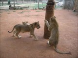 Adorable lion cubs enjoying play time