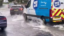 Watch as vehicles navigate heavy road flooding in Crawley