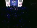Sale sul palco per parlare con Giorgia Meloni. "Aspetto le dimissioni di Mattarella": l'imbarazzo della premier