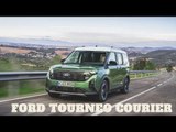 Der jetzt präsentierte E-Tourneo Courier wurde von Grund auf neu entwickelt mit dem Ziel, ein großzügiges Raumangebot und eine hohe Alltagstauglichkeit in einem wendigen Kompaktfahrzeug zu bieten. Kurze Überhänge und gerade, klare Linien unterstreichen dies optisch. Die Front zeichnet sich markentypisch durch die futuristisch wirkende, durchgehende LED-Lichtleiste und einen charakteristischen Kühlergrill im „EV Design“ (EV = Electric Vehicle) aus.