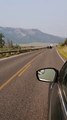 Bustling Bison Family Charges Down Road