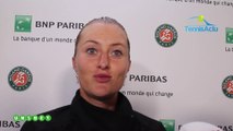 Kristina Mladenovic après son élimination au 1er tour de Roland-Garros, ce lundi. La spirale négative se poursuit pour Kristina Mladenovic. La Française s'est inclinée des son entrée en lice dans ce Roland-Garros 2023 contre l'Américaine Kayla Day, 138e joueuse mondiale. Une défaite 7-5, 6-1 qui porte à neuf défaites sa terrible série. Plus inquiétant encore, la Nordiste n'a pas remporté le moindre match en grand tableau sur le circuit WTA depuis Séoul, en septembre 2022. Elle s'est exprimée en conférence de presse sur cette periode compliquée tout en expliquant qu'elle faisait son maximum pour revenir à un meilleur niveau.