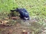 Male Great-tailed Grackle Bathes!