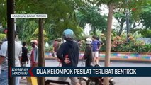 YOGYAKARTA, KOMPAS.TV - Bentrokan antarmassa diduga suporter dan kelompok pesilat terjadi di Tamansiswa, Yogyakarta. <br /> <br />Menurut keterangan warga sekitar, bentrokan diduga suporter dengan kelompok pesilat ini terjadi pada Minggu (04/06/23) sore hingga malam di Jalan Kenari, Umbulharjo, Kota Yogakarta. <br /> <br />Belum diketahui pasti penyebab bentrokan tersebut. <br /> <br />Pantauan dari jurnlasi KompasTV pesilat terkurung di pendopo Tamansiswa dikepung oleh supporter dan warga. <br /> <br />Enam truk polisi yang mengevakuasi pesilat juga sempat dihadang warga dan suporter. <br /> <br />Sementara itu motor pesilat yang tertinggal dirusak massa. <br /> <br />Baca Juga Kronologi Bentrok di Tamansiswa Yogyakarta, Berawal dari Keributan di Parangtritis di https://www.kompas.tv/regional/413126/kronologi-bentrok-di-tamansiswa-yogyakarta-berawal-dari-keributan-di-parangtritis <br /> <br /> <br /> <br />Artikel ini bisa dilihat di : https://www.kompas.tv/video/413131/suporter-dan-kelompok-pesilat-bentrok-di-tamansiswa-yogyakarta