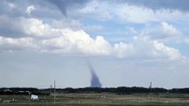 Occurred on May 31, 2023 / Stettler, Alberta, Canada<br /><br />: "On May 31st at 4:40 pm, my son and his friend were in the backyard digging some holes for trees when they noticed the tornado. I was in the house finishing up some graphic design work. My son came to get me because he knew I would want to see it and record it, as I love storms. I imagine also because it was a tornado but my son hadn't told me that. When I went outside I could not believe what I saw. The funnel cloud coming down from the sky was a shock to see. As was the dirt rising up from the ground in the weird shape it was. I could not figure out why the dirt on the ground was so strange. Once we realized the bottom and top were connected it was scary, but really cool to watch. It did not appear to be moving much on the ground so that was a good thing. It was so neat to see the dirt being sucked up in a spiral kind of shape up to the top. It was all so amazing. I called my daughter to warn her. I could not think of who else I should call, I was a little panicky. I heard my son's friend suggest 911 so I called 911. While I was on with 911, we received a tornado alert on our phones, which is what stopped my phone from recording. Gladly, right after the tornado started, it started to dissipate and was gone within a few minutes. From my knowledge, no one was hurt or injured."