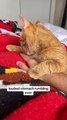 Occurred on March 23, 2023 / Chicago, Illinois, USA<br /><br />: "My 20-pound orange cat, Howdy, has a hard time getting his face clean! I filmed him in March 2023 while he was laying on my lap face-up attempting to take a bath. You can see him struggling to wash his face-- he's licking one paw but using the other to unsuccessfully clean his ear, and at one point he misses his paw completely and licks his stomach instead. He's always been like this but we wouldn't have him any other way!"