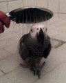 Parrot loves shower