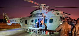 Vídeo mostra como foi o resgate na noite de sábado (17) de cinco dos oito tripulantes que estavam no barco pesqueiro que naufragou em alto-mar em Santa Catarina.