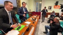 Amico Mio, il saluto di Salvini prima dell’inizio della conferenza stampa alla Camera