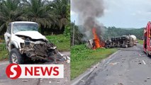 A man was killed after the four-wheel drive vehicle he was driving was involved in a collision with two lorries at KM10 of Jalan Lahad Datu-Sandakan, Sabah on Saturday (July 1) morning.<br /><br />The two lorry drivers managed to escape with only minor injuries in the incident. <br /><br />Read more at https://shorturl.at/yAMS1<br /><br />WATCH MORE: https://thestartv.com/c/news<br />SUBSCRIBE: https://cutt.ly/TheStar<br />LIKE: https://fb.com/TheStarOnline