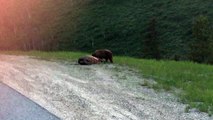Bear Devours Roadkill Elk