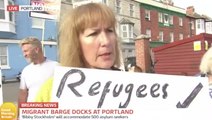 An accommodation barge has belatedly arrived at the port where it will house 500 asylum seekers as the Government's migration plans were poised to become law after ministers saw off fresh challenges by peers. Bibby Stockholm was pulled by a tug into Dorset's Portland Port on Tuesday morning, with the proposals to use it to house migrants under Rishi Sunak's bid to "stop the boats" crossing the Channel a month behind schedule. However, its arrival has angered many locals. Some are unhappy that their town is hosting the barge whilst others criticise the government’s treatment of those who arrive on these shores. Report by Jonesia. Like us on Facebook at http://www.facebook.com/itn and follow us on Twitter at http://twitter.com/itn