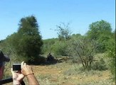 Un-suspecting giraffe stolls past lioness!